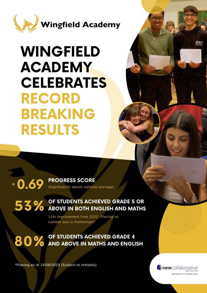 Wingfield Academy has secured its position as the number one school in Rotherham for students achieving grade 5 or above in English Language. 80% of students also achieved a grade 4 or above in Maths and English and the school saw a value-added progress score significantly above the national average.